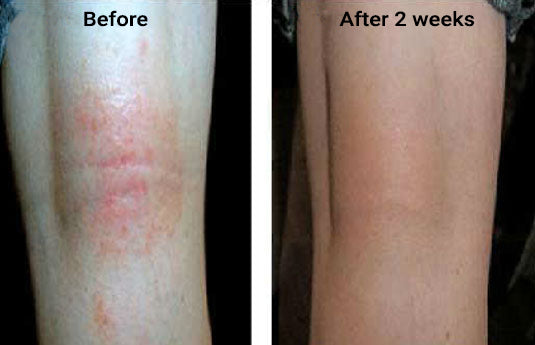Female (3 years old) with eczema on the back of the knees was treated 3 times daily for 2 weeks.