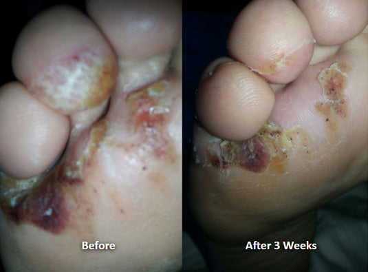 Patient 48 years old lady with wounds on the foot caused by diabetes. To help nourish tissues and expedite recovery, CamOleum Plus 3 in 1 for Burns, Wounds and Skin Irritation & Itching ointment was topically applied 4 times daily for 3 weeks.